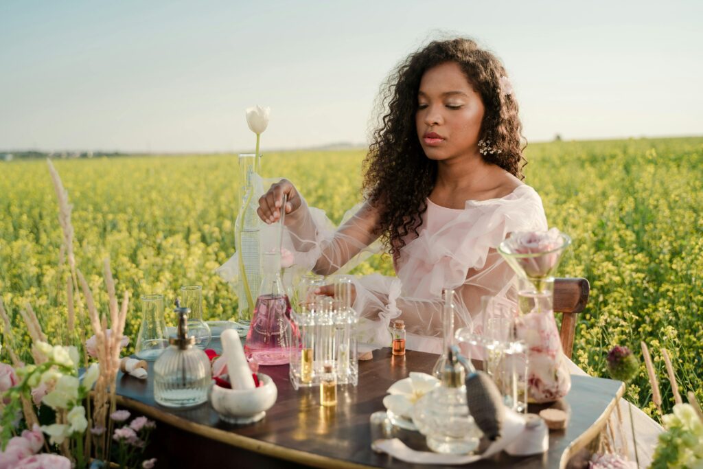 Natural scents like green and herbal perfumes come from plants. They smell like mint, basil, green tea, and freshly cut grass. These smells are perfect for women who want perfumes that are natural and relaxing. They make you think of calm hikes in the woods or quiet times in the garden.